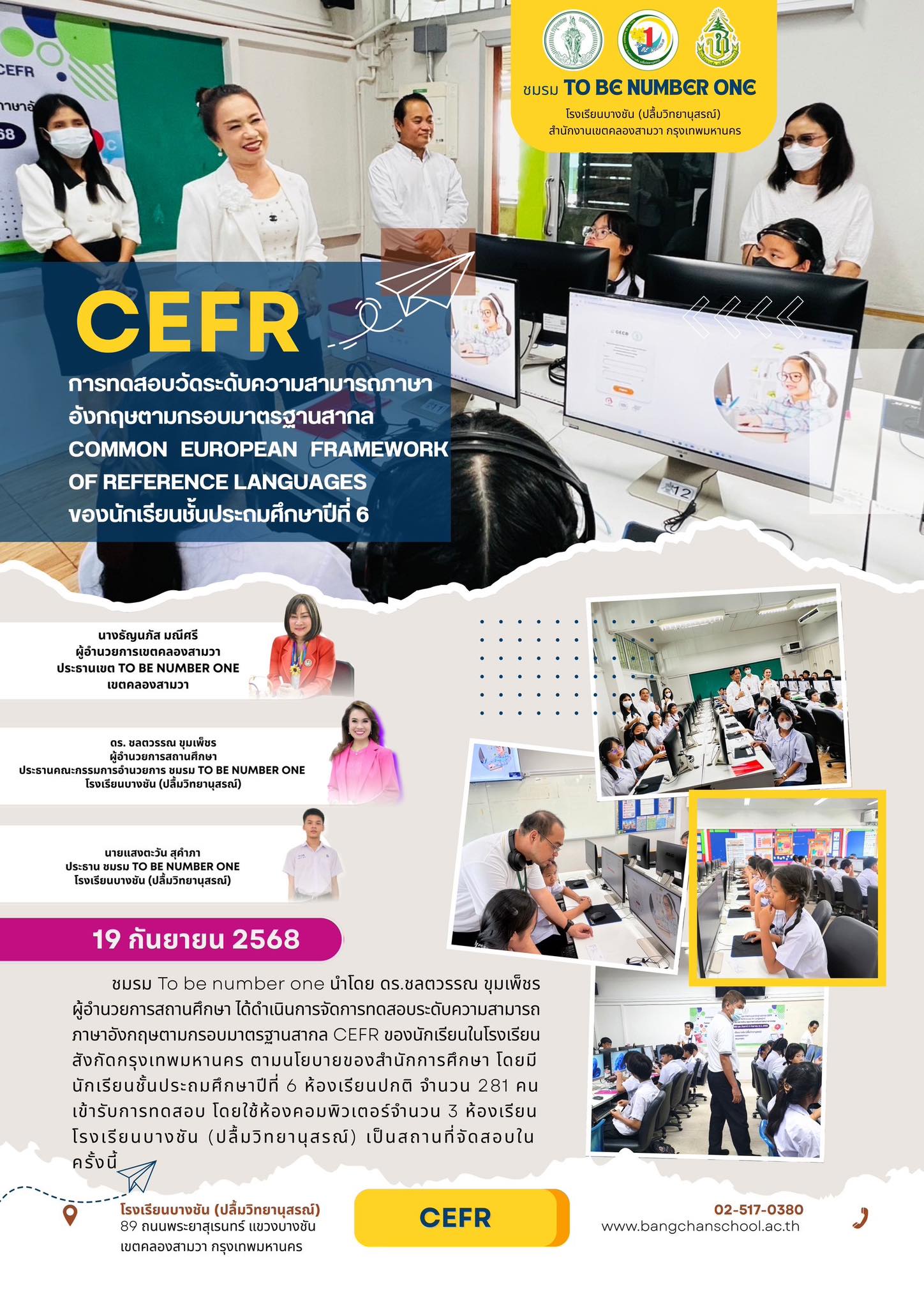CEFR การทดสอบวัดระดับความสามารถภาษา อังกฤษตามกรอบมาตรฐานสากล COMMON EUROPEAN FRAMEWORK OF REFERENCE LANGUAGES ของนักเรียนชั้นประถมศึกษาปีที่ 6**** 19 กันยายน 2568 ชมรม To be number one นำโดย ดร.ชลตวรรณ ขุมเพ็ชร ผู้อำนวยการสถานศึกษา ได้ดำเนินการจัดการทดสอบระดับความสามารถภาษาอังกฤษตามกรอบมาตรฐานสากล C...